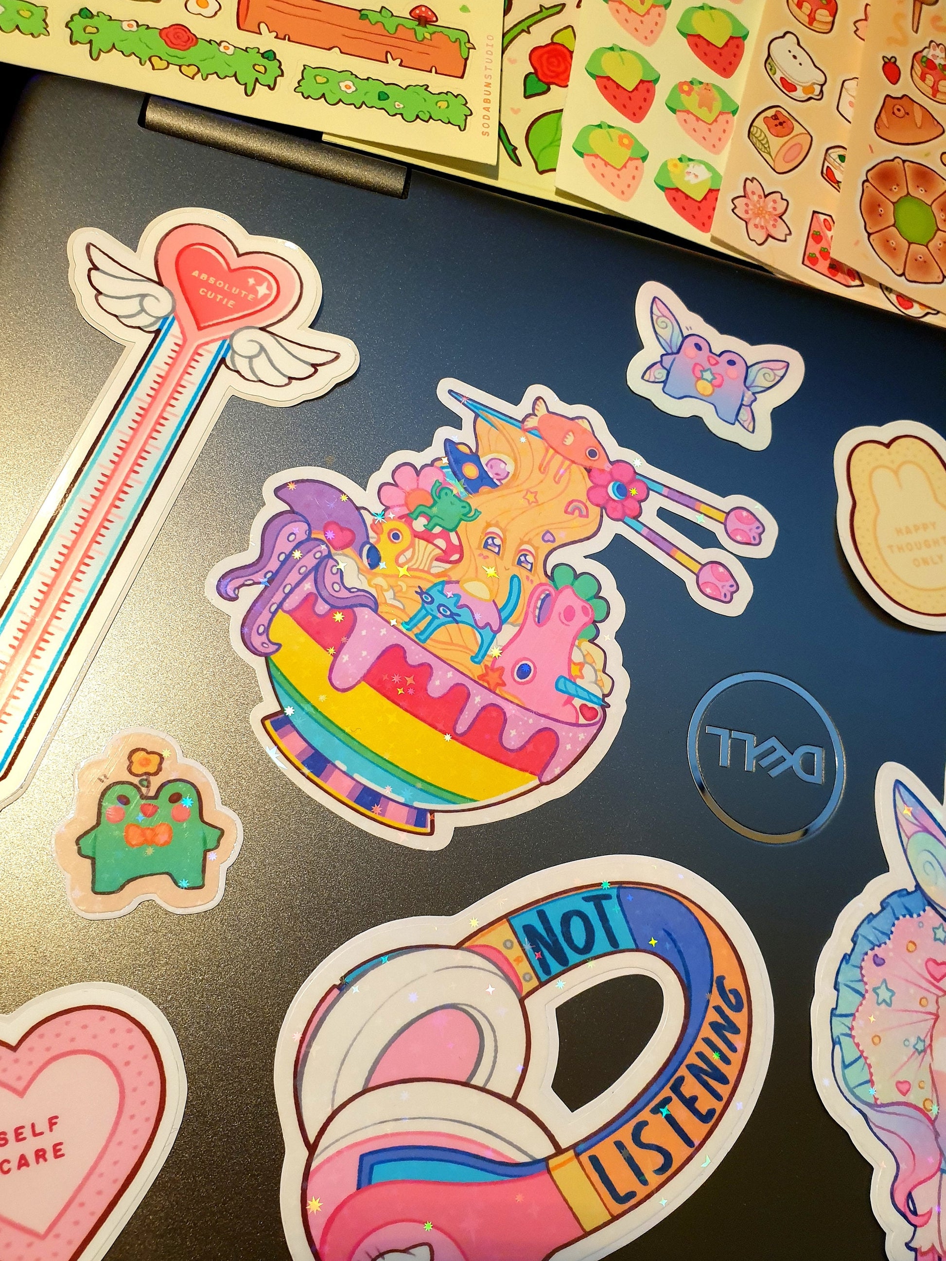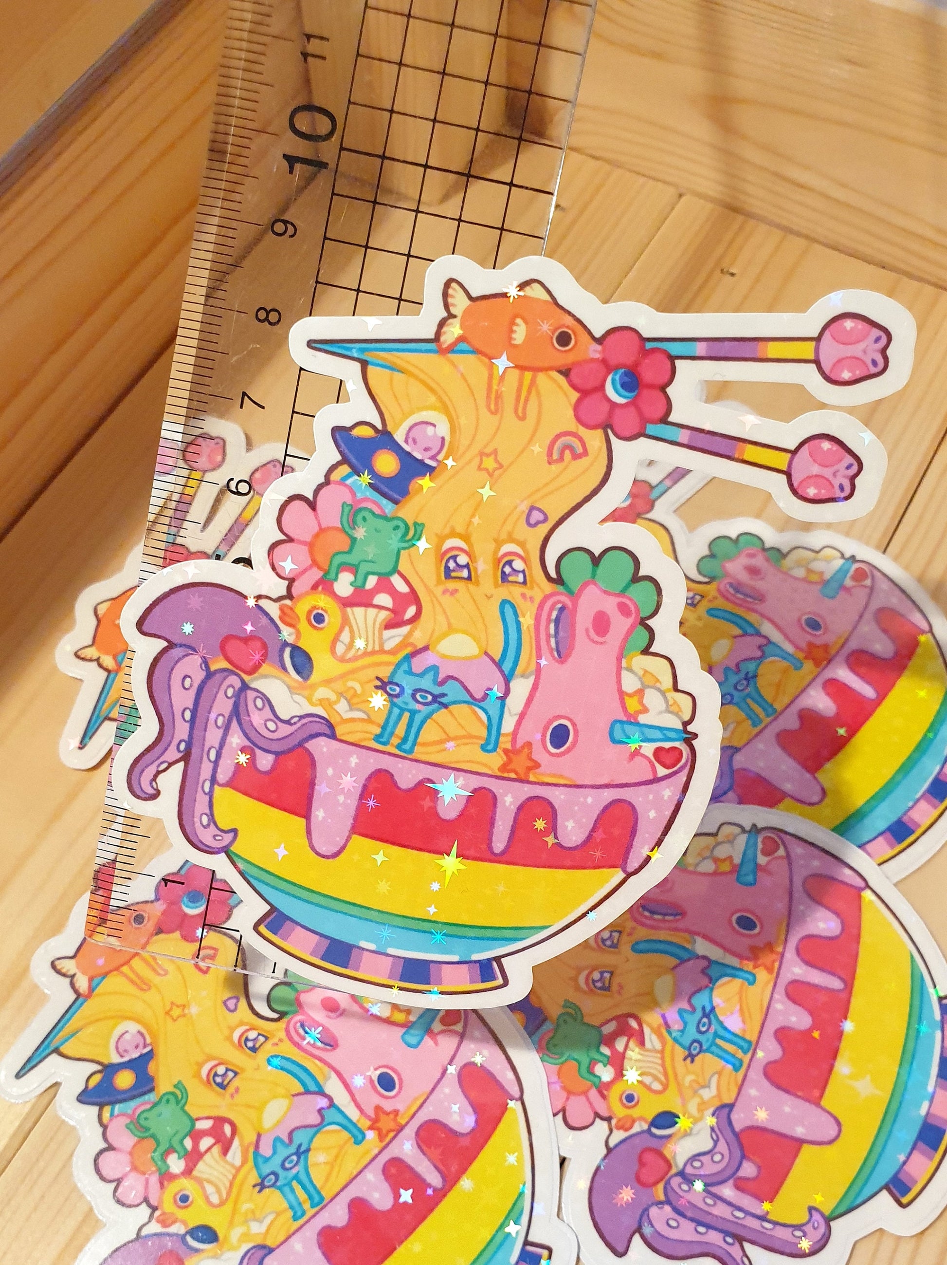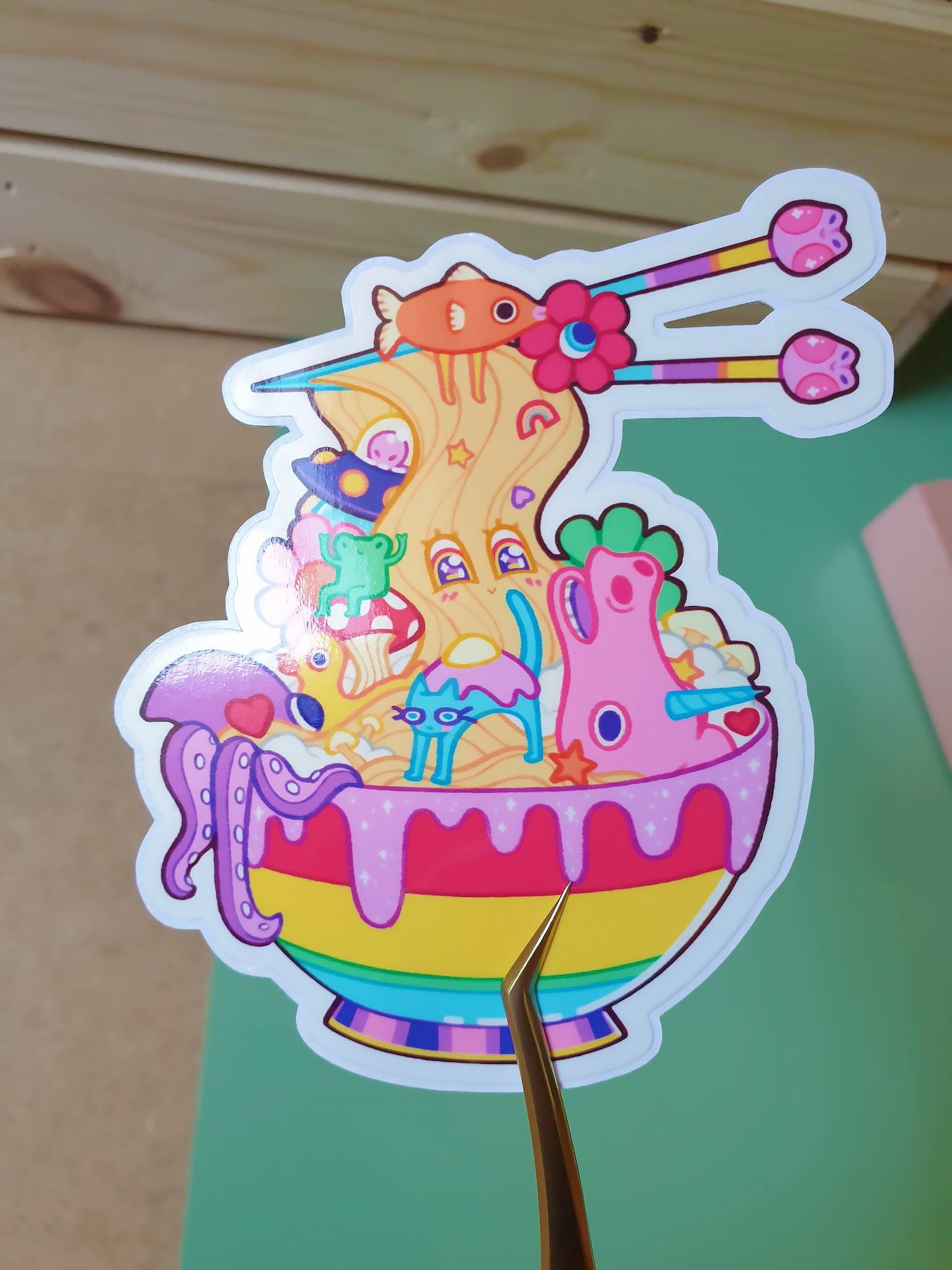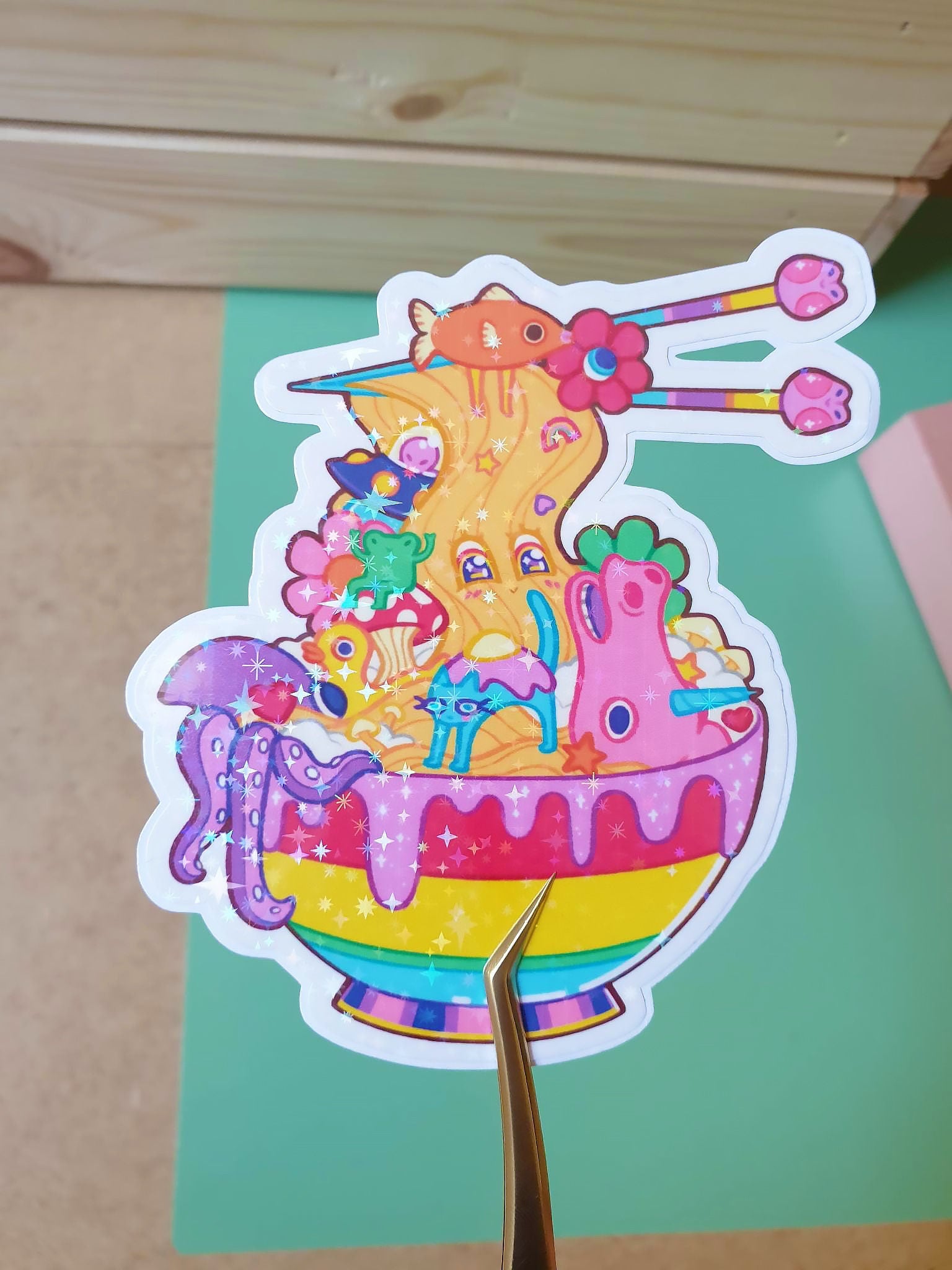 Vinyl laminated sticker paper | Comes in either gloss or holographic.