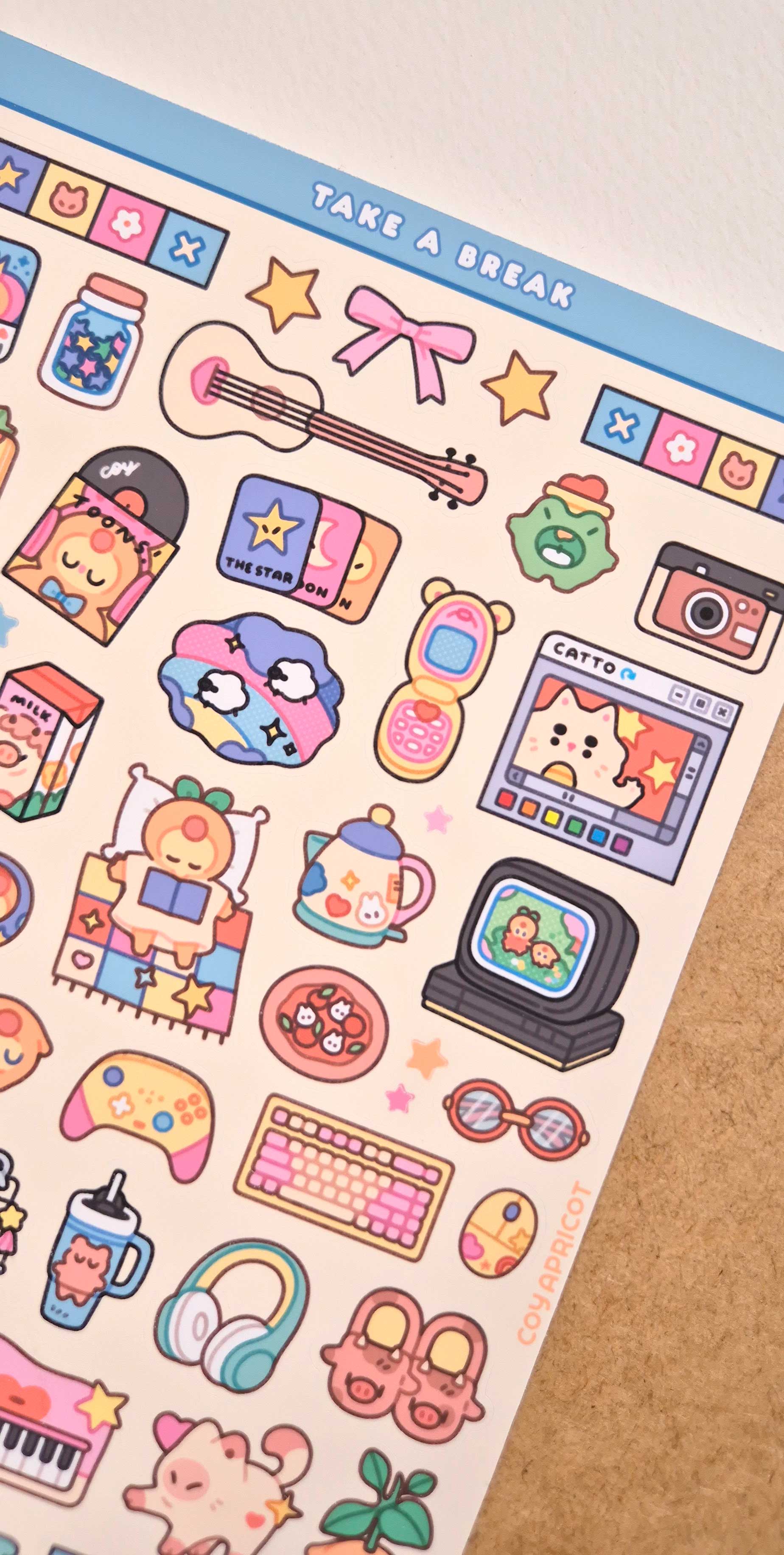 Add a touch of whimsy to your bullet journal, planner, or scrapbook with this hand-drawn dreamy sticker sheet. Featuring adorable kawaii-style illustrations of our mascot coy, her pup and Biscuit the cat! These stickers are perfect for all your DIY projects. Each sticker is designed with a charming vibrant retro aesthetic, making it ideal for decorating your bujo, planners, and notebooks.